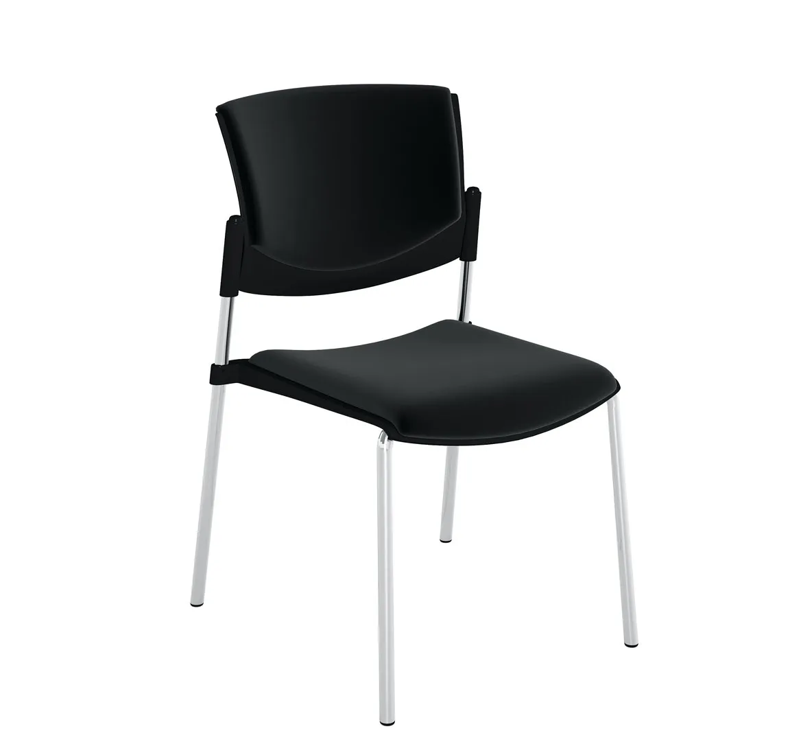 В складскую программу включены штабелируемые по пять штук кресла с черной пластиковой спинкой — на четырех опорах и на колесах, без подлокотников и с подлокотниками, а также со столиком.